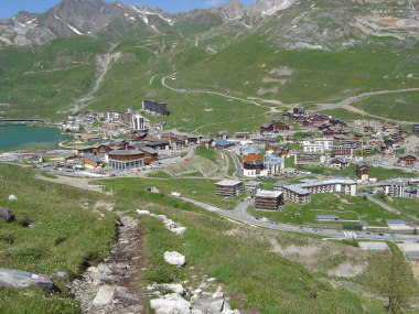 Bergen en zicht op ski-oord Tignes-le-Lac